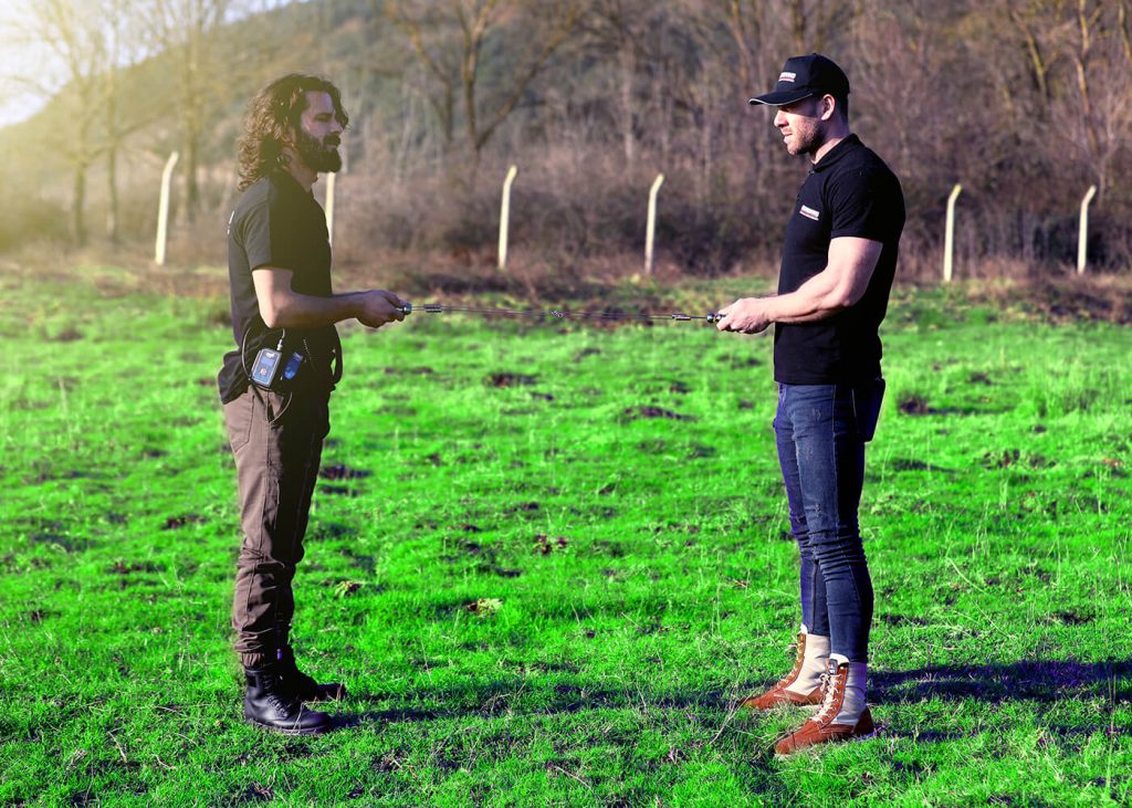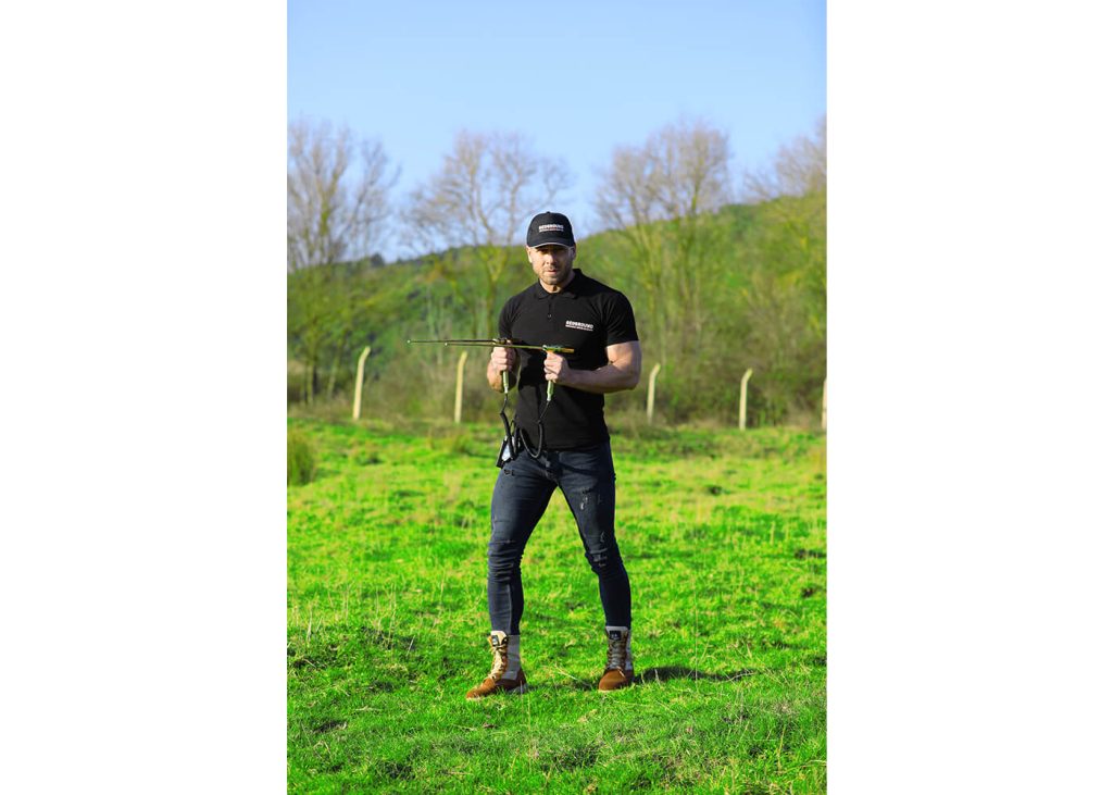 Ce mode de recherche est destiné à être utilisé par une seule personne utilisant une paire de poignées en cuivre avec des antennes en cuivre montées à l’avant et tenant les poignées des mains gauche et droite.